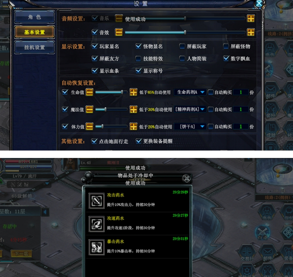 首先需要注意的点是虚幻空间内的怪物伤害很高,因此需要我们把设置里面的自动回复设置成生命值低于85%时就自动回血,确保我们能扛得住怪物的伤害。同时可以吃上攻击、攻速、暴击药水,增加自身的输出能力,如果在4分钟的时候发现已经打掉怪物20%血量以上,那么肯定是能稳定通过这一层的啊,可通过这一点判断自身实力避免浪费时间。