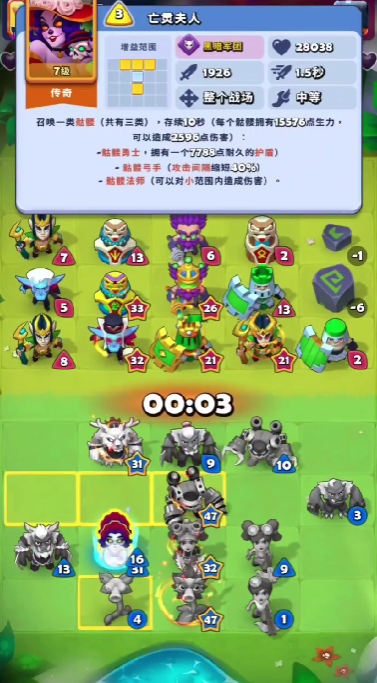 如若玩家想要使用亡灵夫人作为主要C位,则需要侧重收集黑暗军团的各类角色,其中就包含有傀儡、巨兽等等,同时,玩家还需要保证续航能力,可以在阵容当中,放置图腾一类的单位,增强回血效益。