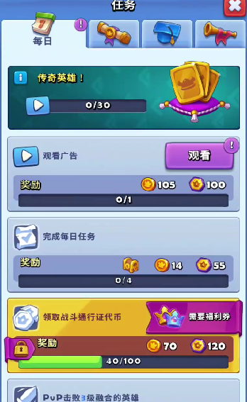 每日任务包含有参与pvp对局,亦或是猎杀小怪,玩家每日只需要将活跃度提升至一百点,即可领取所有的奖励,其中就包含有大量金币奖励。