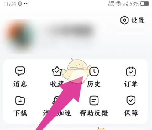 1、在我的页面,点击历史选项打开。