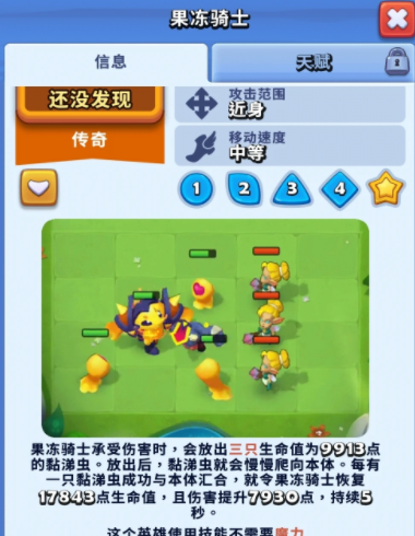 在进击的战场这个游戏里,玩家可以选择大量的角色组成队伍,在组队的过程中,关于这些角色的搭配是非常自由的,并且游戏里每一个角色的能力也都各有区别,在这种设定下,每个成员都能组建出一支专属于自己的队伍,不断去应对游戏里的对手,游戏里的角色很多,每一个的特性也各不相同,相对来说,表现力最优秀的肉盾角色要属果冻骑士,角色可以作为前排的防御,帮助整支队伍抵抗大量的伤害,非常适合新手玩家选择这些角色。