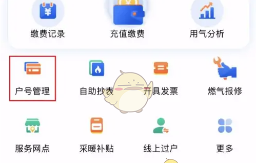 1、首先进入北京燃气主界面,点击户号管理图标