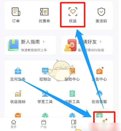 1、在网心云“我的”窗口中点击“权益”图标。