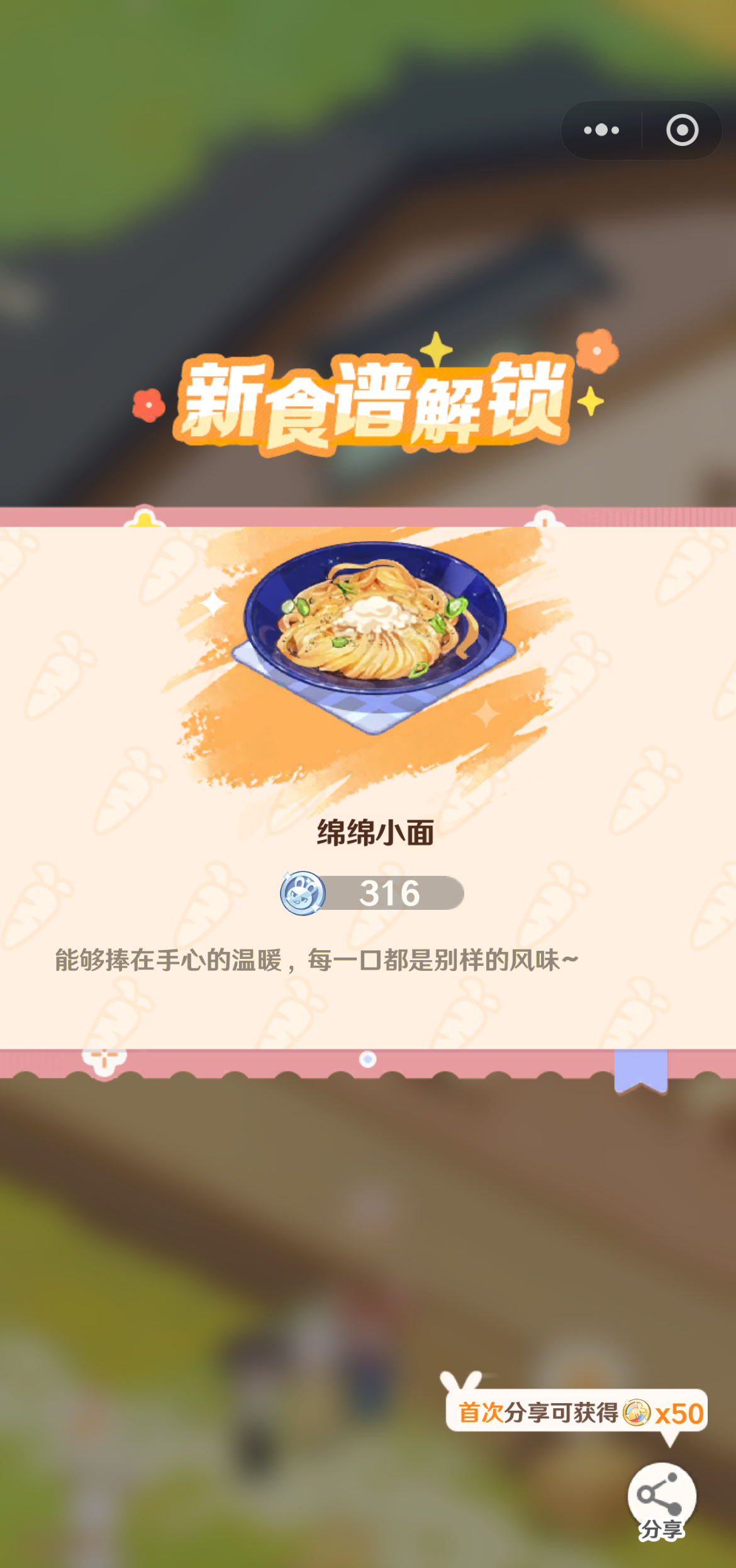 绵绵小面可谓是最美味的面食了,这是一位新顾客的需求,玩家需要获得料理锅一个,奶品精致机一个,再加上环境评分,环境评分在这个菜谱中是缺一不可的,如果环境评分缺少的话可以前往尾尾木作中心,通过三消的方式合成小店地毯所需要的材料。这样具备了所有的基础设施之后,就可以开始食谱的研发了,首先需要选择一份面条作为主食,然后再按照顺序放入一瓶清水,第3步再放入一份奶油,最后再放入一瓶清水搅拌就可以了,每一次指针在转动时,玩家都要做好预判,让它能够精准地停留在每一份原材料上。制作好绵绵小面之后,店铺的经营评价分数能够加48分。