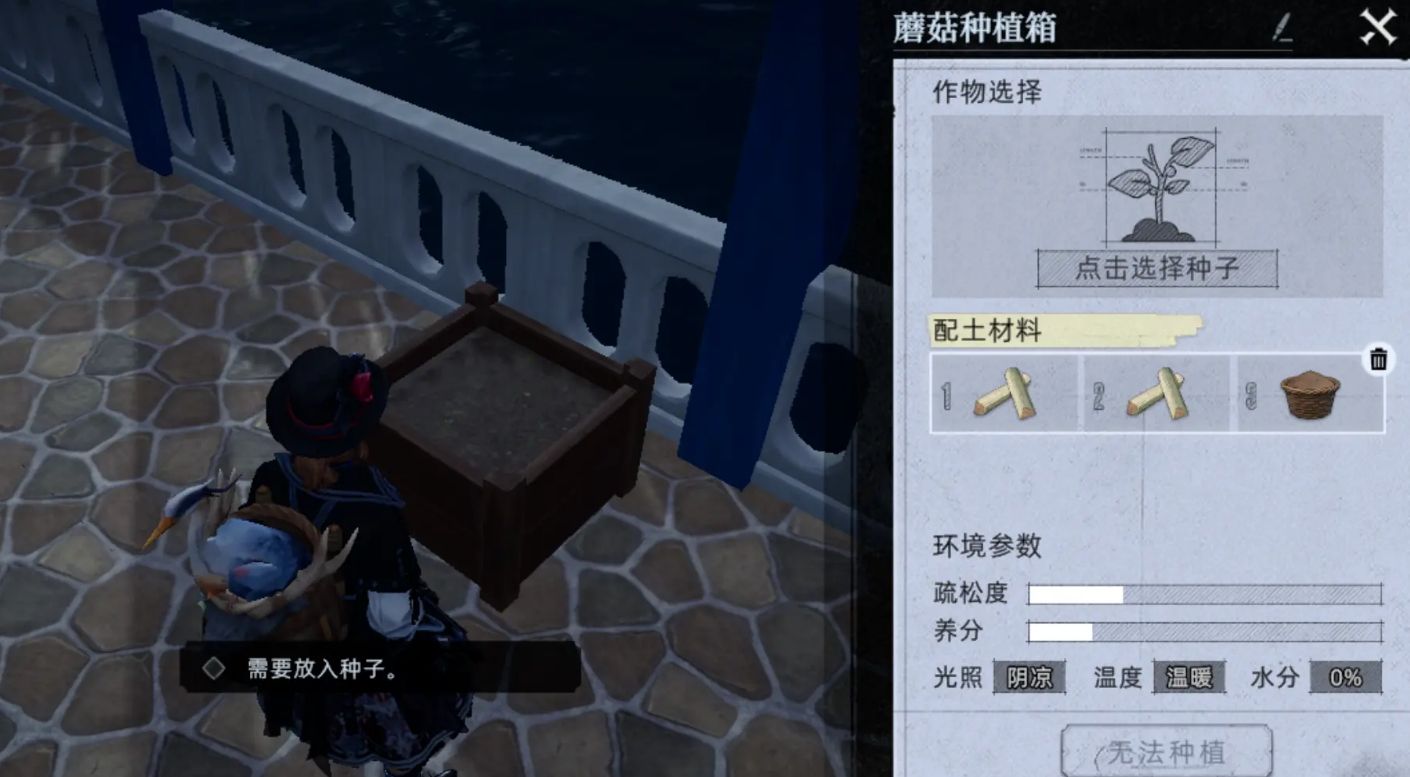 白灵菇是种十分常见的蘑菇,在地图上有非常多,人们外出探索时经常能采摘到,并且采摘时还有概率能获得白灵菇菌种,只有拿到它后才能进行白灵菇的种植。同时,蘑菇类植物需要使用专门的蘑菇种植箱才能种植,各位可在激活它的科技后将它制造出来,获取难度也不大,材料也只需要普通的木材等资源。在做好这些前置条件,玩家还需根据白灵菇的习性,在家里建一个能遮挡住阳光的房间,并将做好的蘑菇种植箱放上去,为它配好蓄水池方便自己往后浇水。