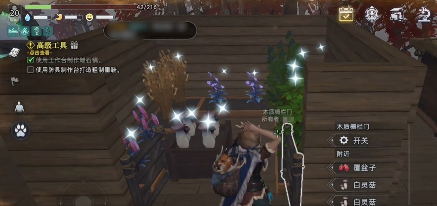 种好后的白灵菇只需等上一段时间就会成熟,各位可像野外收集资源那样对它进行采摘,且有概率能再次拿到白灵菇菌种,让自己能接着在蘑菇种植箱里继续进行白灵菇的培育,以此来源源不断的获取白灵菇。倘若没能拿到菌种,则可去野外进行收集,然后再回来继续种植。通过种植各位可拿到大量的白灵菇,效率远比前往野外进行收集要来高,而且种植后只需进行浇水这一项操作,整个种植过程可谓十分的方便,因此更建议在拿到白灵菇菌种且解锁了蘑菇种植箱后,用种植的方法来获取它。