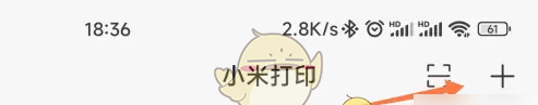 1、在小米打印APP上方点击【加号】。