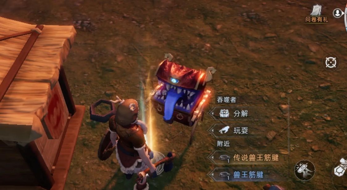 吞噬者位于沃维森林南岸,在地图上有着极为明显的标识,各位跟着走就能找到一处由成堆空宝箱构成的小山丘,吞噬者就位于山丘最上方。不过,要想成功完成吞噬者的收服,各位需要先将家园打包,然后将家园安放在吞噬者附近,不需要太久,只要所放的位置能让自己看得近吞噬者就行,同时也要准备一些可丢弃的材料,不用太好,轻木等基础材料就行。准备好后,各位就可登上山丘与吞噬者交互选择”打开“,这样吞噬者就会被玩家激活。