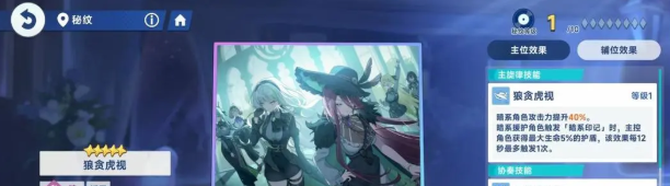 协奏技能就需要条件,必须要收集足够的音符。在满足之后就可以激活,狼贪虎视的协奏技能就是逐利的暗涌。一旦暗系主控角色在拿到护盾之后,那全队的暗系伤害都可以提升30%,并且还会持续12秒的时间。无论是主要位置还是辅助位置,都会有主位效果以及辅位效果。暗系援护角色一旦在触发暗系印记之后,那主控的角色就可以获得最大生命5%的护盾。每相隔12秒的时间就可以触发一次,这一点还是很有优势的,如果你可以把它放在辅助位置,那么就可以靠援助角色,然后去叠加护盾,一整套下来战斗力就可以直接翻倍。