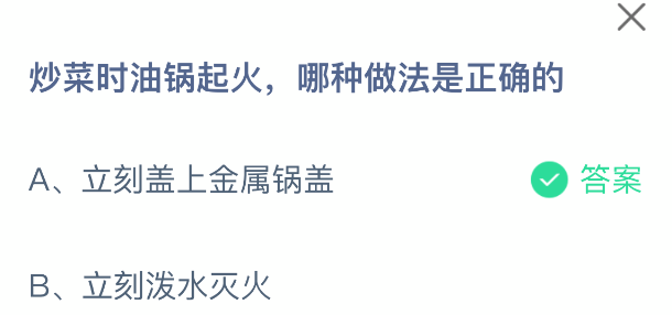 以上就是炒菜时油锅起火,哪种做法是正确的,支付宝蚂蚁庄园2025年10月17日答案最新,更多精彩内容,请点击关注更新!