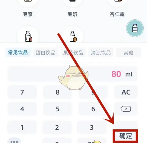 2、添加页面,选择喝水类型,数量,点击右下角确定保存。