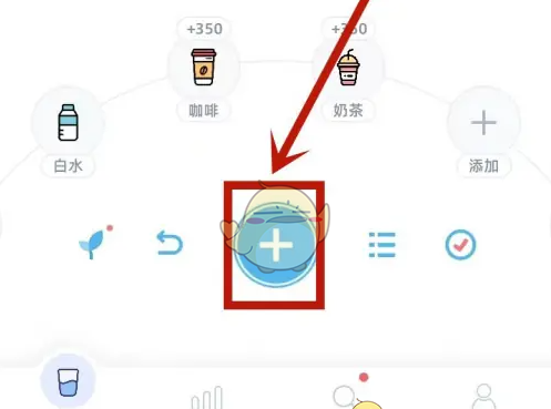 1、手机柠檬喝水软件首页页面,点击添加图标。