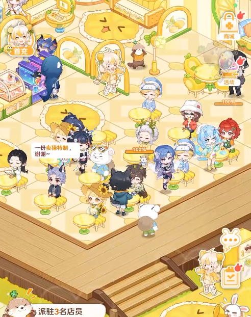 但是整体店铺的装饰是比较自由的,每个玩家都可以展现自己的创意,根据不同的风格自由搭配各类的家具,这些家具的类别样貌各不相同,可以在游戏里多去尝试几个摆放方式,只需要把收银台设置在门口,方便顾客点餐即可,内部可以随意设置,玩家在进店之后会选择自己喜欢的位置就餐,需要注意的是,想让店铺吸引更多的流量,装饰只是其中的一个部分,玩家还需要合理的安排营业时间,每个角色都有自己的疲劳值,一旦疲劳值过高之后就无法更好的服务顾客。