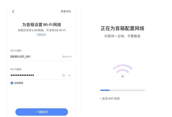 3、输入wifi账号和密码后,点击一键配网即可。