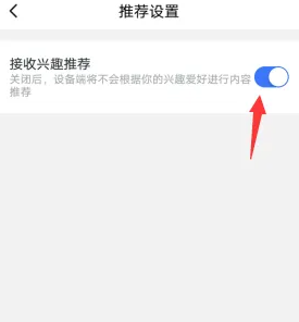 3、在推荐设置页面,关闭“接收兴趣推荐”的按钮。