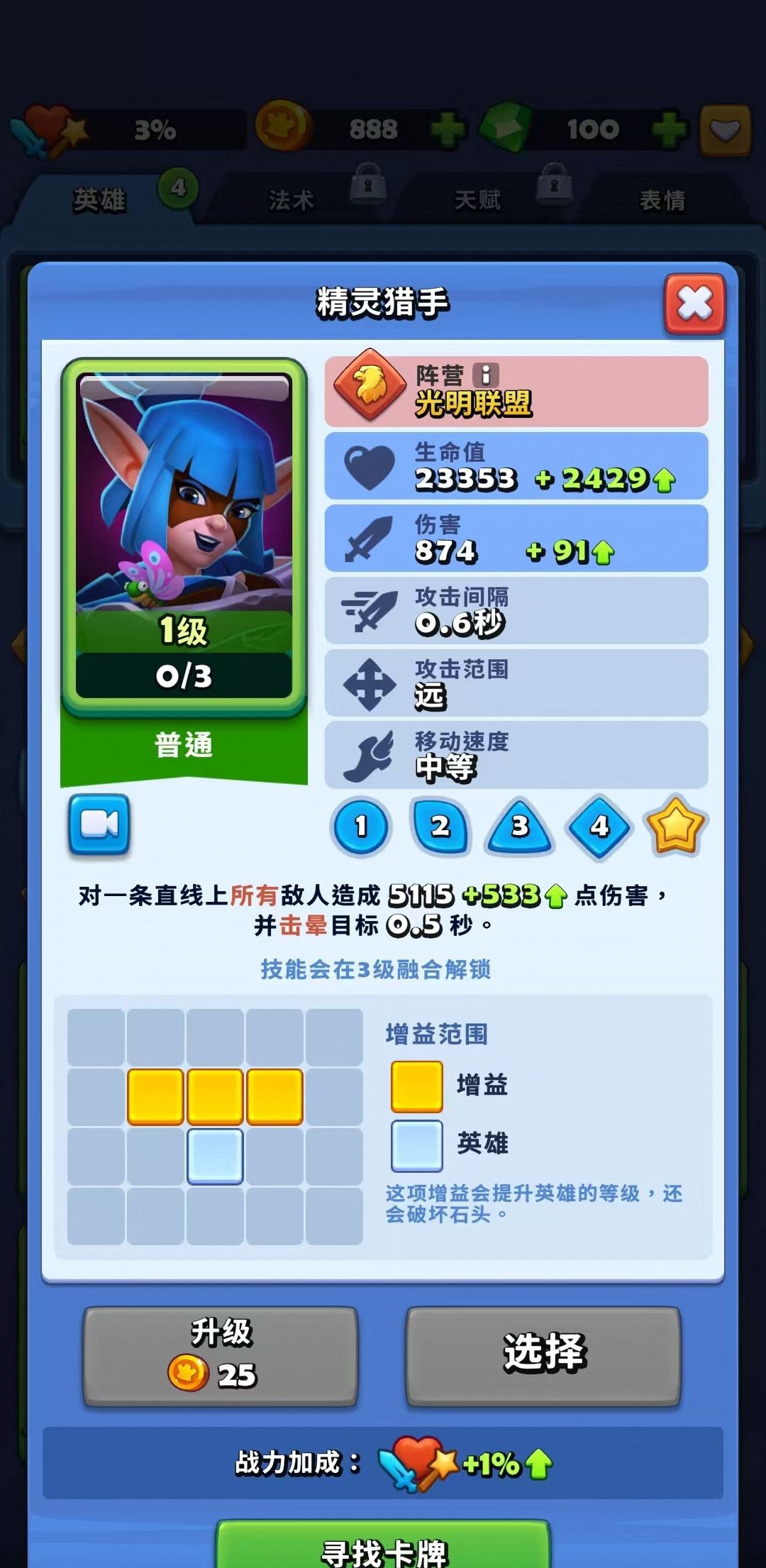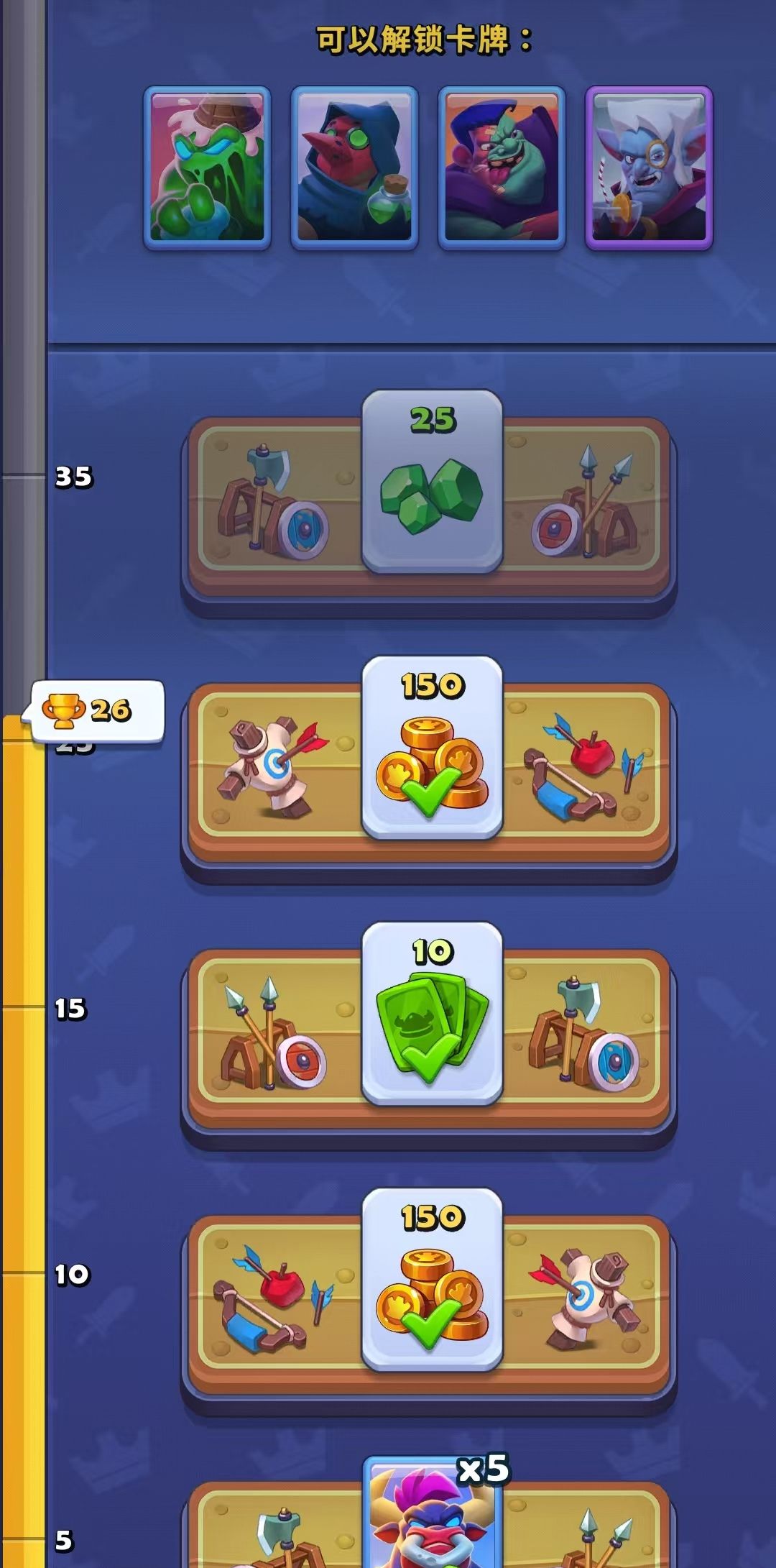 大家刚开始进入到游戏中,卡牌数量比较的少,可以先解锁更多的牌,来不断的向上推进,到今经济场关卡当中推送的越多,可以帮助大家解锁更多的卡牌数量,解锁的这些卡牌在卡牌功能当中,大家都可以看到每一个阵营都会经过一定的划分,可以根据需求来不断的进行强化,直接选择其中的一个卡牌就可以点击详情来选择升级的项目,获得卡牌之后,大家可以在王者宝或者是商店宝石等多种充值活动当中来获得。
