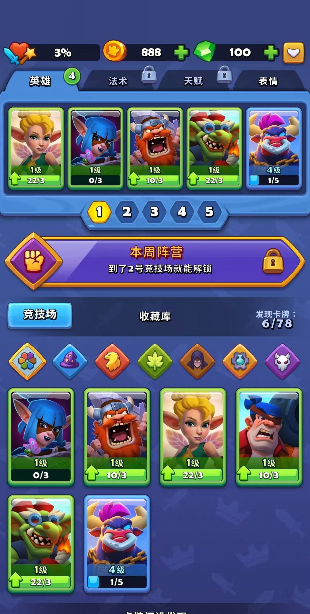 游戏中也会有一些稀有的卡牌类型,只能通过充值来获得比较适合氪金的玩家。那么,游戏中阵容的搭配也非常的重要,选择合适的天赋才可以决定后面的战斗力,这些卡牌需要注意传奇英雄卡牌是必须要满13级的,是可以帮助大家获得三个天赋栏位,那么如果是十级的玩家们可以学习两天的天赋,13级的玩家们也可以学习三项天赋,大家只要收集符文就可以来进行升级,后期一定要更换成传奇的内容,帮助自己更好的推进竞技场,解锁一些天赋玩法。