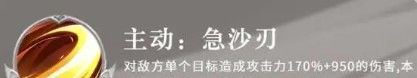 对敌方单个目标造成攻击力170%+950的伤害,本次攻击增加60%命中率。