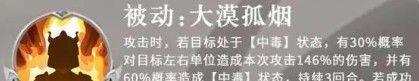 攻击时,若目标处于【中毒】状态,有30%概率对目标左右单位造成本次攻击146%的伤害,并有60%概率造成【中毒】状态,持续3回合。若成功击杀【中毒】状态下目标,则必定触发(反击不触发)
