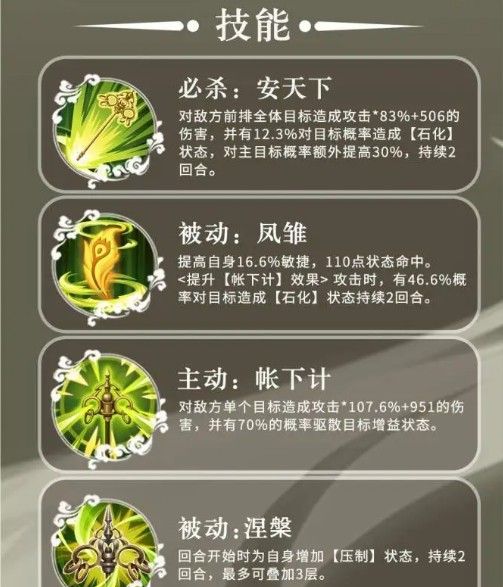 技能推荐①:石化攻击-普通攻击时,有概率对目标造成石化状态,持续2回合。