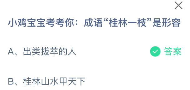 以上就是小鸡宝宝考考你:成语“桂林一枝”是形容,支付宝蚂蚁庄园2025年10月18日答案最新,更多精彩内容,请点击关注更新!