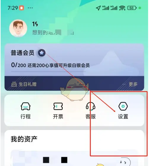 1、打开享道出行APP,在主界面点击右下角的“个人中心”,在我的界面中点击“设置”