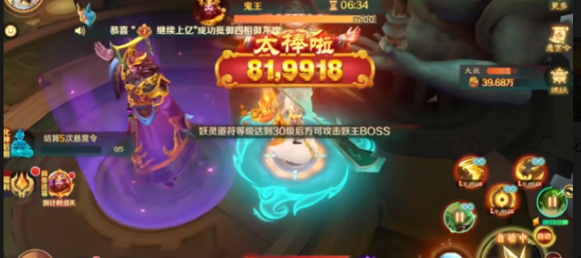 要想打鬼王可没有你想象的这么简单,你自然就需要保证自己的等级达到30级。如果等级没有达到30级,那就只能够干看着就算着急也没有用。等到等级达到30级之后就可以和鬼王过招,这个场面真的是比较热闹的。当你在开打之前,系统还会给你来一个太禄陆 81,9918的提示,虽然并不知道这是一种什么样的特殊buff,但是总会让人觉得热血沸腾。在打的时候,鬼王确实有一些难缠,从战斗的画面你就可以看到会有各种乱飞的技能特效。