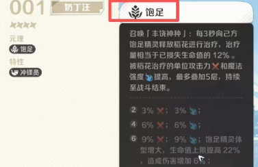 “饱足”属性实际上是属于后期属性,它可以召丰饶神,每三秒对己方的目标饱足精灵,释放一次治疗,同时,被丰饶神治疗过后的饱足精灵,不仅可以增加自身体型,其生命上限值,以及造成的伤害数值,也会跟随着同步提升。