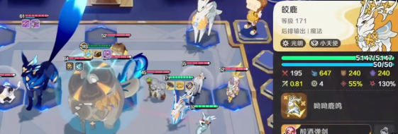 在位置的安排上面,玩家可以尽可能的使用压倒型位置排列,由于光明属性精灵附带有护盾效果,只有在游戏的初期,才需要放置到后排区域,一旦抵达游戏中后期,由于护盾数值较大,一些输出类的角色,也可以充当前排坦克角色存在。