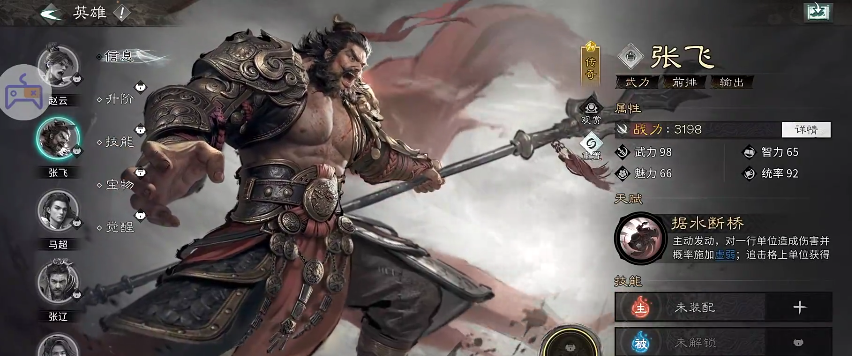 第三个为大家推荐的就是张飞,张飞的效果目前是很适合放在前排的,这个角色他本身就算是没有培养,基础的血量都是要比其他武将高出一点的,而且在防御数值上面有很大的上限可以提升起来,一般来说,他在前排的话,抵挡住敌人火力的时间还是比较久的,而且他可以带来一定的嘲讽技能,影响到敌人,如果敌人是想要攻击我方的一些脆皮角色,他的这个嘲讽就可以直接将对面的输出拉到他的身上来,这样他就可以扛起来整个队伍的伤害,让后排的输出角色可以尽情的释放自己的核心输出技能,除了他的硬抗效果之外,控制大家也是可以用一下的,因为他的技能里面控制效果也有,可以让敌人短时间之内无法行动,所以后期如果大家为他升星的话,绝对是非常好用的一个肉盾角色。
