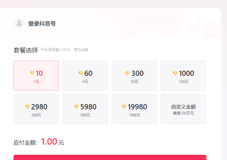 理性消费:充值抖币主要用于打赏主播、购买虚拟礼物,请务必根据个人经济情况理性消费。