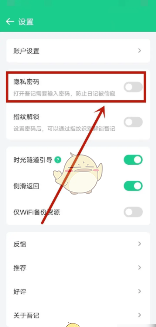 《吾记》设置隐私密码方法