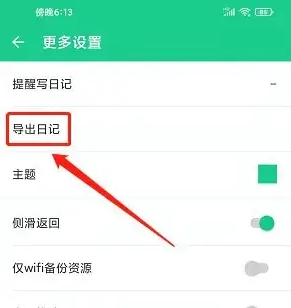 3、进入更多设置界面,点击【导出日记】。