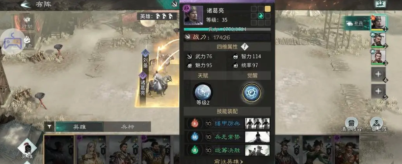 这个搭配其实是属于比较出名的一个国家队的这个阵容里面,他整体的防御能力也是比较肉的,而且加上了一定的群体攻击,在这里黄月英跟诸葛亮还有额外的羁绊加成可以提升,所以在国家队效果上面来说,绝对是很适合新手用来进行开荒的,就算没有赵云大家也可以上甘宁,这样这个阵容基本所有的玩家都有机会组成,那么后期大家如果提升自己国家队的强力,还有一个搭配就是荀彧加上郭嘉加上许褚。