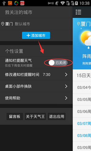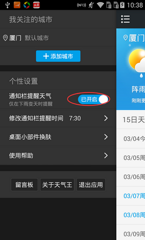 《2345天气王》设置通知栏提醒时间方法