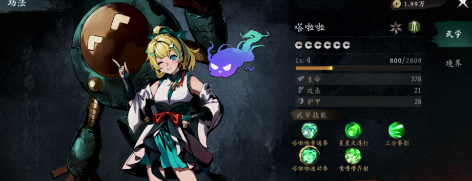 第一个为大家推荐的就是嗒啦啦这个角色,她在进行攻击的时候是使用的内力弹进行攻击,而且每一次的攻击都可以对敌人命中之后造成5%的属性伤害,这里因为她本身是一个木属性的角色,所以带来的属性伤害也是此类属性伤害,使用连打的技能在攻击的同时还可以触发一定的暴击,额外触发暴击之后,还会再次带来3发内力弹之类的输出,这里就算进行输出的话,额外数值也会跟上面普攻数值一样,后期的技能上面还有一个三分拳影技能,这个技能使用的时候会根据内力弹的数量带来足够的增加效果,而且输出的范围一般都是在对面的二排带来的6发攻击效果。