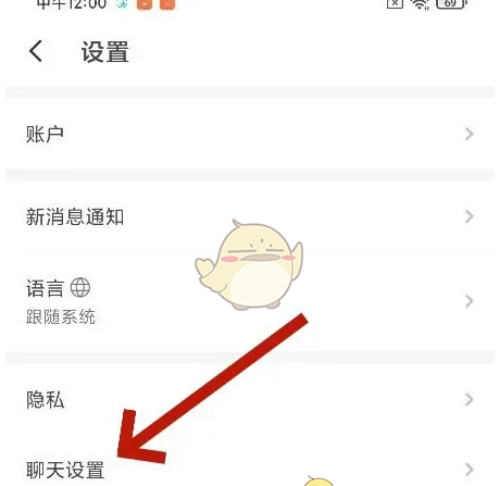 2、然后,进入设置页面中,点击聊天设置。