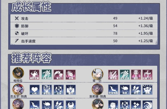 成长属性、阵容搭配