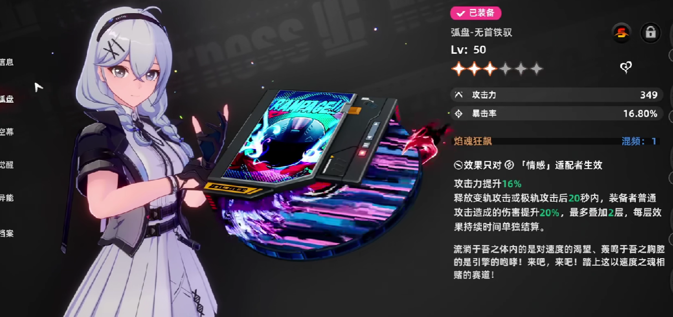 输出型弧盘包含有无首铁驭、日蚀,作为主要C位需要搭配的武器,它们包含有很强的攻击倍率加成和暴击率加成。
