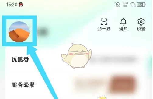 2、打开我的页面,点击我的头像。