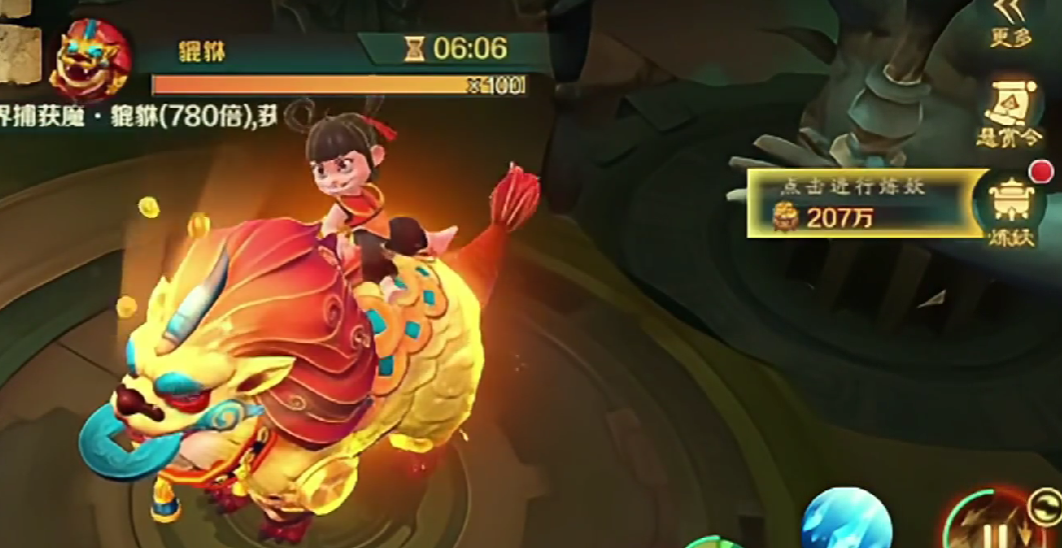 值得注意的是,若队伍中存在魔道哪吒这一角色,他将在战斗中自动锁定貔貅进行持续攻击,并且在此过程中,有一定几率激活双倍奖励机制,同时提升触发超级满贯的概率,大幅增强收益回报。