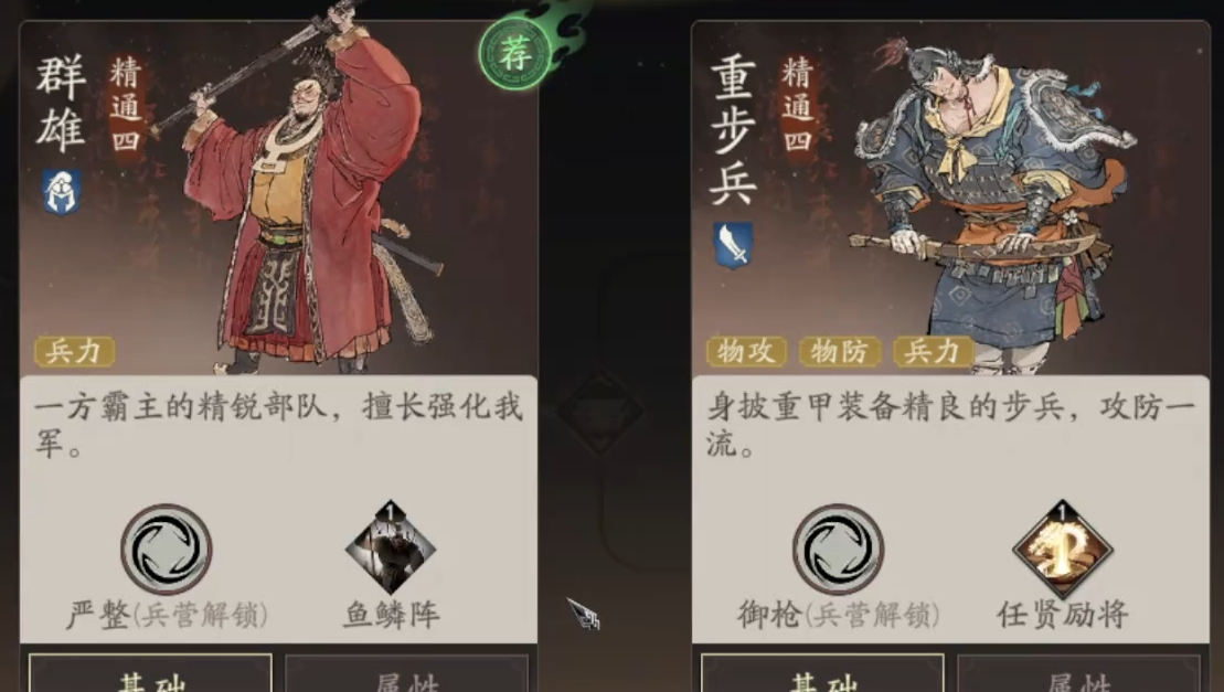 刘备还拥有专属羁绊“桃源结义”,当张飞与关羽同时在场时触发,激活后使我方全体武将攻击力提升10%,物防提高20%,法防增加30%,且合击与追击所造成的伤害额外提升30%。职业方面支持群雄和重步兵两种选择,但从团队增益角度出发,推荐优先选择群雄职业,以最大化辅助效能。