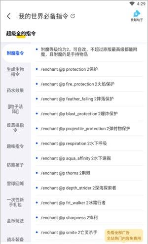 4、点击进入,复制指令,最后复制粘贴到我的世界游戏指令输入栏中即可。