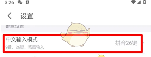 2、进入设置点击‘中文输入模式’
