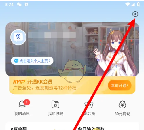 1、打开KK键盘点击设置