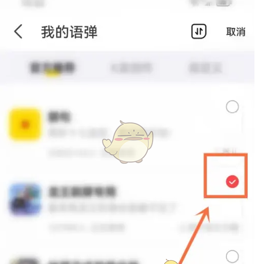 1、打开app对玩页,点击右上角“我的语弹”图标。