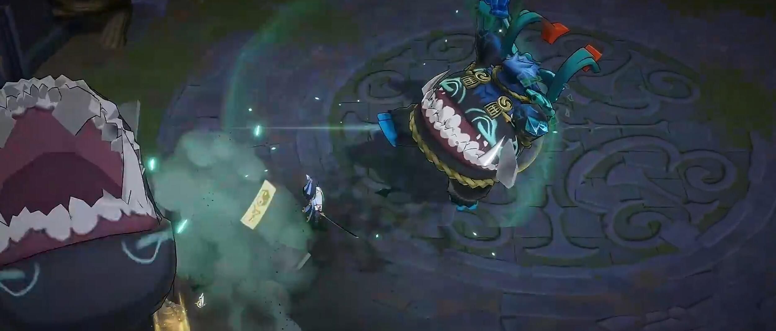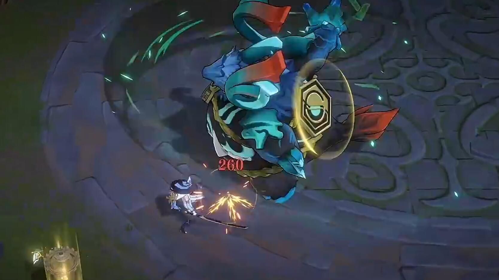 青渊凶厄是一个三属性boss,他有风属性,暗属性和雷属性,一共三种属性的技能。不过他本体却是风系,在游戏当中,玩家们可以使用土系,石系和电系技能来对其进行克制。青渊凶厄虽然体型非常巨大,可他一点也不笨拙,当有敌人出现在他身边的时候,他便会抱着自己厚厚的肚皮然后猛然冲过去,之后便会使用双手进行轮流攻击,这一段的攻击虽然看起来有间隔,Boss整体属于一个霸体阶段,小伙伴们最好不要在这个时候发起攻击。