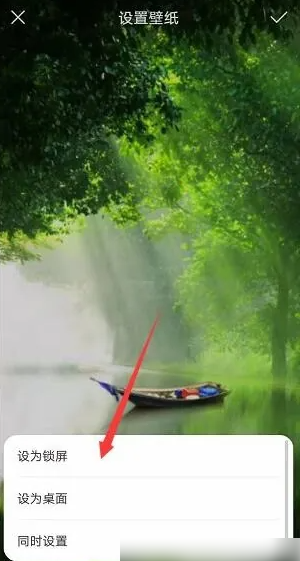 4、点击应用之后在页面右上角点击打勾,然后页面下方就会出现选项,设为锁屏或桌面或同时设定,如下图