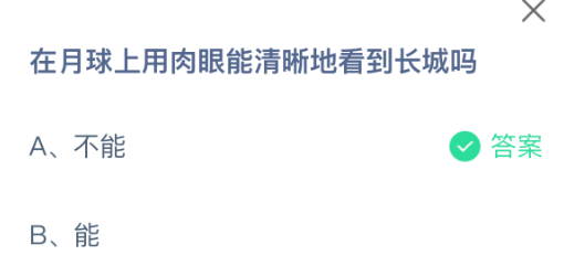 以上就是在月球上用肉眼能清晰地看到长城吗,支付宝蚂蚁庄园2025年10月24答案最新,更多精彩内容,请点击关注更新!
