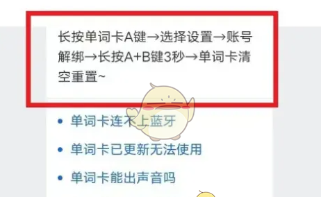 3、帮助与反馈页面,发送单词卡关机相关问题,根据提示单词卡A设置解绑,长按A+B,重置关机。
